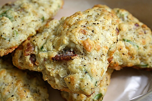 Peppery Bacon and Cheddar Scones. These crazy-delicious buttermilk scones are loaded with chopped bacon, cheddar, green onions and freshly ground black pepper. They’re fantastic on their own, but you could also split them and add a scrambled or fried egg for a killer breakfast sandwich.