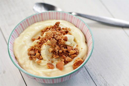 Banana Pudding. A thick, silky pudding topped with sliced bananas and a vanilla wafer crumble. So good, your dad might be OK with the time you snuck out of the house and got pulled over in your PJs.