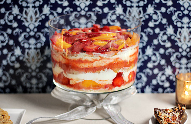 Trifle, a British favorite for hundreds of years, is made with layers of cake, fruit, custard and whipped cream. It’s strikingly beautiful in that deep glass trifle bowl, but it always seemed a little heavy and boring to me. There’s no hot-and-cold contrast. Nothing crunchy. But last weekend, I decided to give Tartine’s Summer Fruit Trifle a try, and now I finally understand the trifle love.