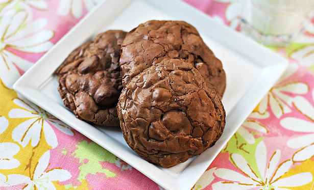 These Triple-Threat Rocky Road Cookies look like your basic chocolate-chocolate chip, but they are so much more. So full of chocolate, pecans, walnuts and marshmallows that they barely hold together. Outside, they have a crisp, thin layer that fools you into thinking they might be dry. But then you take a bite, and – holy goodness – these cookies are melt-in-your-mouth moist inside. Ready to fall apart.