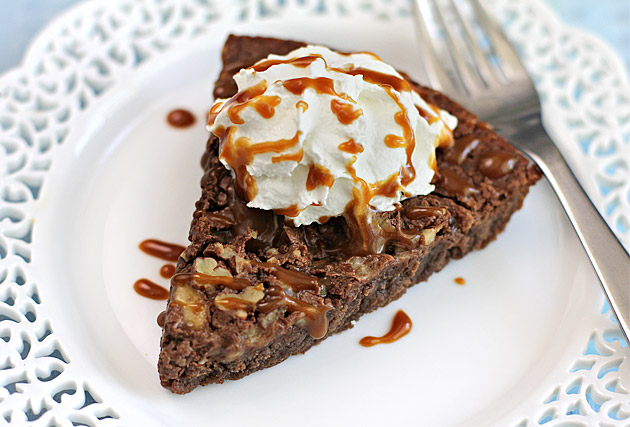It’s basically your granny’s brownie pie taken to the next level. About 10 minutes before it’s done, you sprinkle the top with chopped Goo Goos (or any other candy bar) and slide it back in the oven, so those pieces melt into a rich, gooey top layer that’s been known to inspire others to take out the trash in a spontaneous act of gratitude.