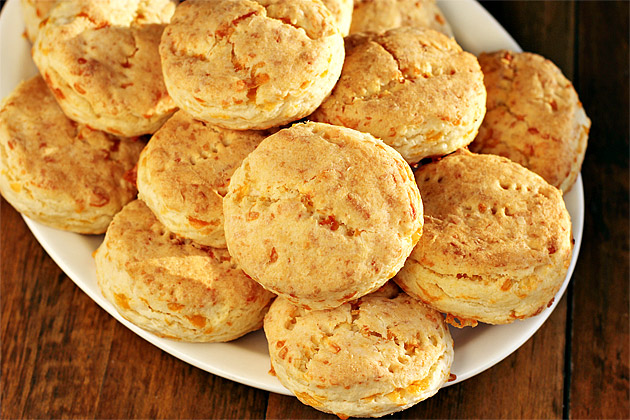 They’re made mostly with heavy cream instead of buttermilk, so they’re crisp on the outside and rich and buttery inside. The Cheddar doesn’t just turn up in every other bite. It’s as obvious and undeniable as the light of the sun, only better, because the sun isn’t made of cheese.