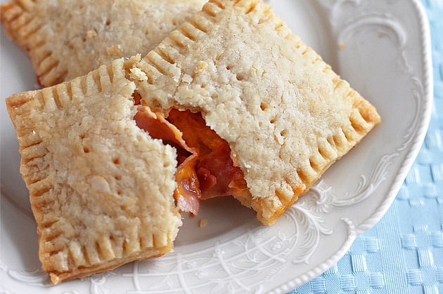 You should know that these pop tarts are neither well-balanced nor fortified with vitamins and minerals. They don’t contain the appropriate amount of fiber. But they are good. The pastry is flaky and buttery, the kind that gets crisp around the edges and shatters when you bite into it. And that shattering gives way to a molten core of gooey Cheddar cheese and chopped Black Forest ham, as much as the pastry will hold.