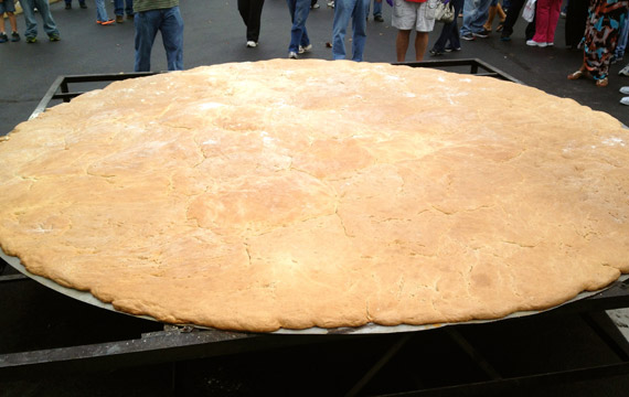 If you’re like me, you probably expected a tall biscuit, but this one’s more like a floury, 10 1/2-foot sugar cookie.