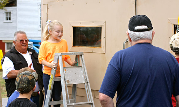 While we waited, the kids in the crowd took turns climbing a ladder to peep inside the oven.