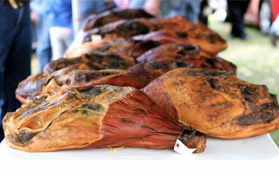 Afterwards, we checked out the country hams. Two tables full, waiting to be judged.