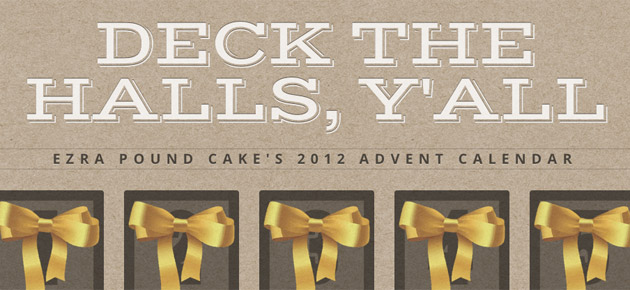 Each day’s post will appear on this site, but if you’d like to see the Advent calendar as a traditional one-page beauty, check out the one Jeff has created at ezrapoundcake.com/advent. (That’s a screenshot of it above.) See the unopened gifts? With each new day, that day’s gift box will lose the gold ribbon and change color. Then you can click it and go to that day’s post.