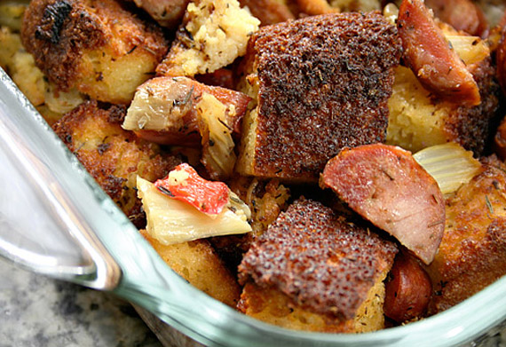 Cornbread Stuffing with Andouille, Fennel and Bell Peppers