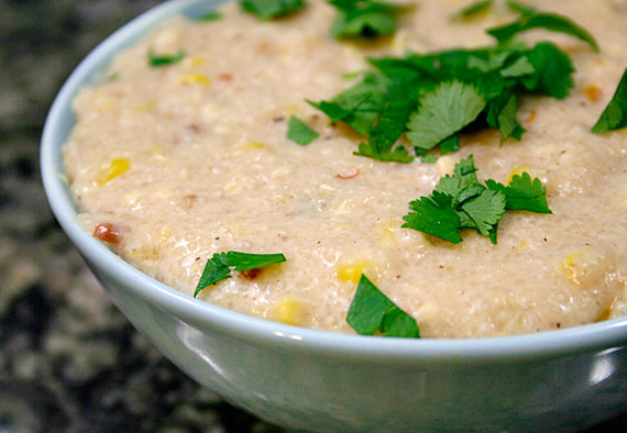 Since you're familiar with cooking stone-ground grits, you could always make that substitution with this recipe. Start with the corn and onion base, make the grits your way, and then add the cheese and chipotle or jalapeños.