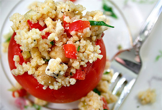 Tomatoes that make a salad. Like this couscous salad with chopped tomatoes, chickpeas, red bell pepper, onion, cucumber and feta. So good you’ll feel like you’re doing something bad. And isn’t that what summer is for?