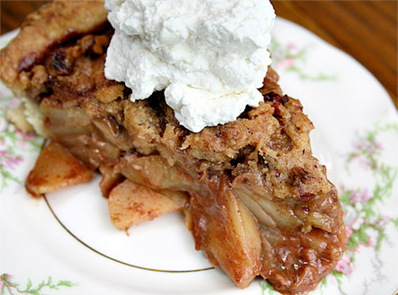 This pie is naughty. The kind that will spank you without using a switch. A buttery pie crust filled with cinnamon-spiked apples swaddled in Southern Comfort caramel and crowned with praline.