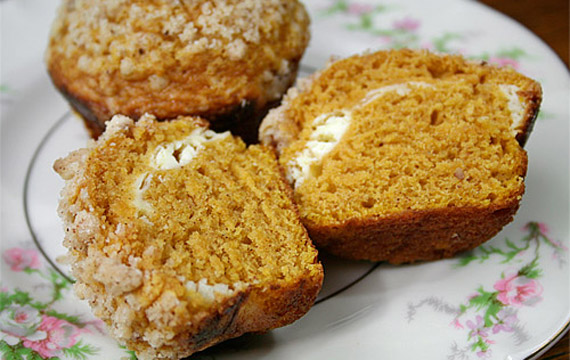 Pumpkin and Cream Cheese Muffins with Pecan Streusel
